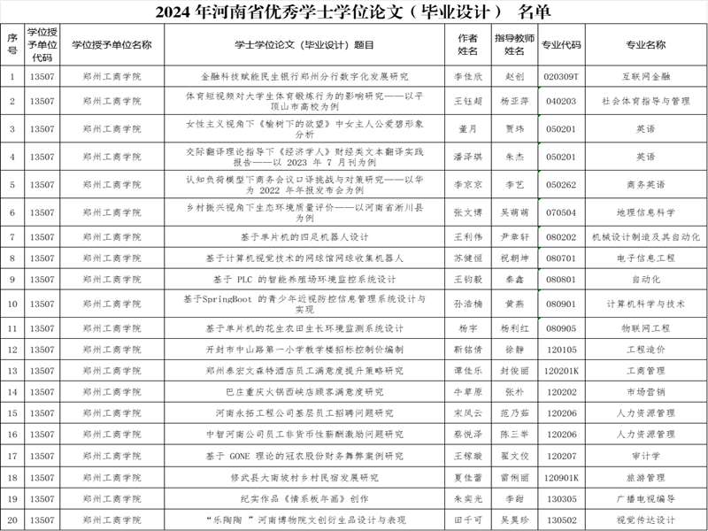 我校20名毕业生本科毕业论文(设计)获评河南省优秀学士学位论文